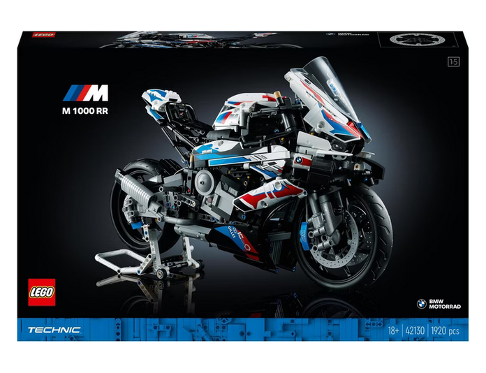 A BMW szupermotorkerékpárja 1920 darabból. A LEGO Technic BMW M 1000 RR soros 4 hengeres motort tartalmaz mozgó dugattyúkkal, működő felfüggesztéssel, állítható hátsó szárnnyal és autentikus M festéssel. A valaha készült legrészletesebb LEGO motorkerékpár.